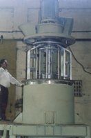 The top assembly consist of Bearing Housing, With Bearing , High Speed Motor for homogeniser and second motor for Scraper. A circular pipe sprayer arrangement is provided on the inner side of the container above the scraper blade to clean the wall of the container.An easy top assembly lifting arrangement is provided using hydraulics for Cleaning of the Blades and the entire container for taken different batches thereby less downtime involved. |