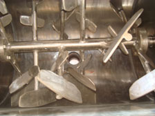 It contains an equal number of forward and reversing paddles which constantly move the ingredients from one end of the mixer's tank to the other. Paddles, which move material toward the outlet.