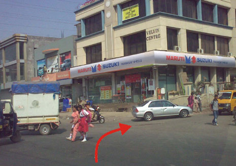 travel 1 K.M then you will see Maruti Showroom at your right hand side and take right turn from Maruti Showroom about 100 Mt from the Maruti Showroom take right